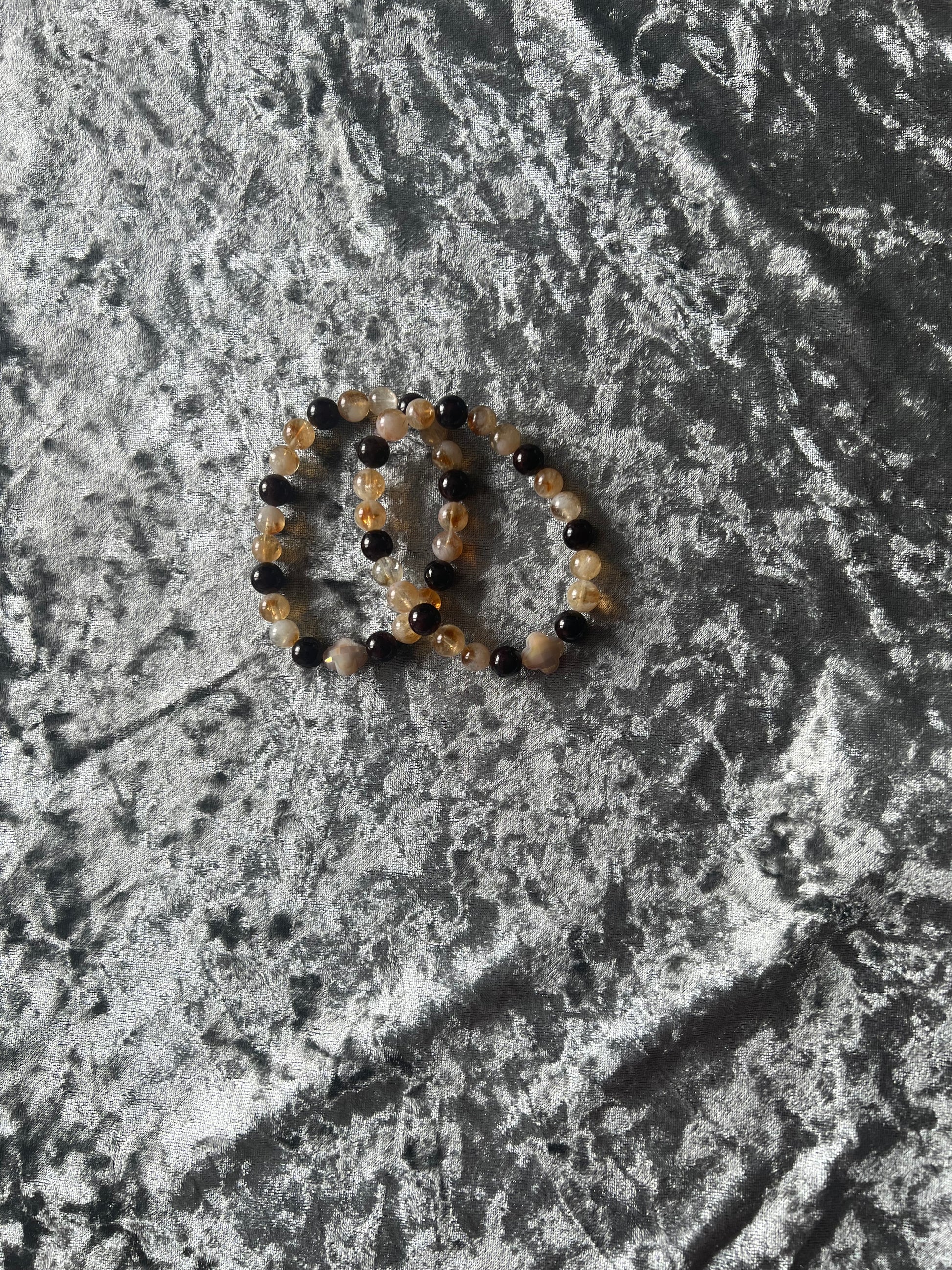 Handcrafted with Citrine (the merchant’s stone) and Garnet for grounding, this bracelet is infused with cosmic prosperity energy. Citrine attracts wealth, joy, and success, while Garnet offers protection and stability.