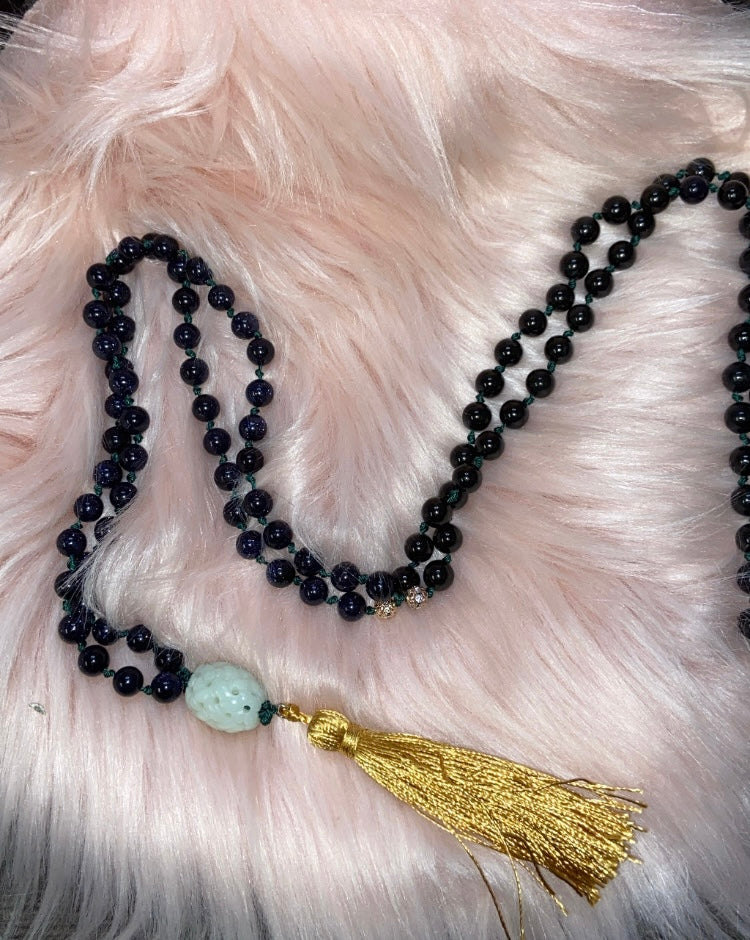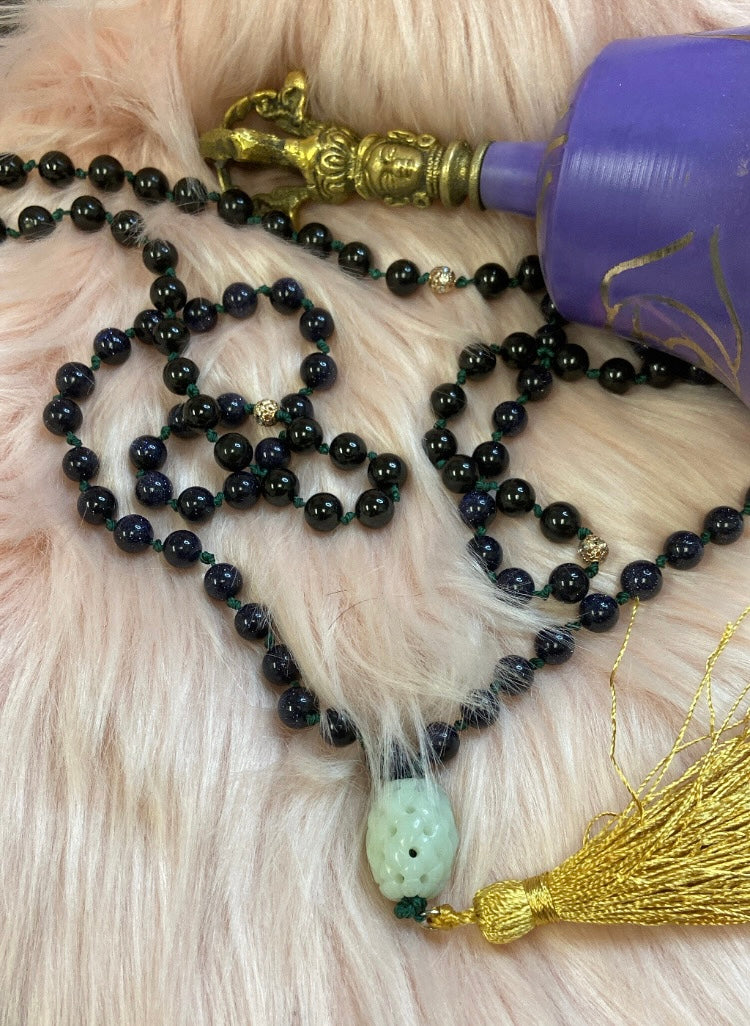 Blue Sandstone • Black Tourmaline • Jade Mala Necklace