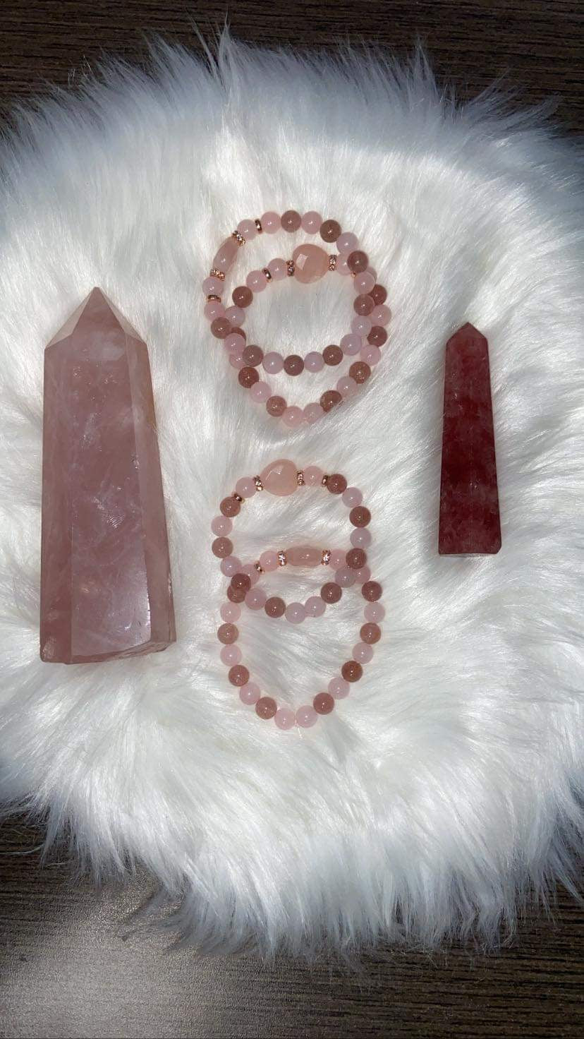 Paired with Rose Quartz — the ultimate crystal of unconditional love — this bracelet opens the heart, encourages compassion, and nurtures peace within. Together, they create a loving frequency to support your healing, emotional balance, and magnetic energy.